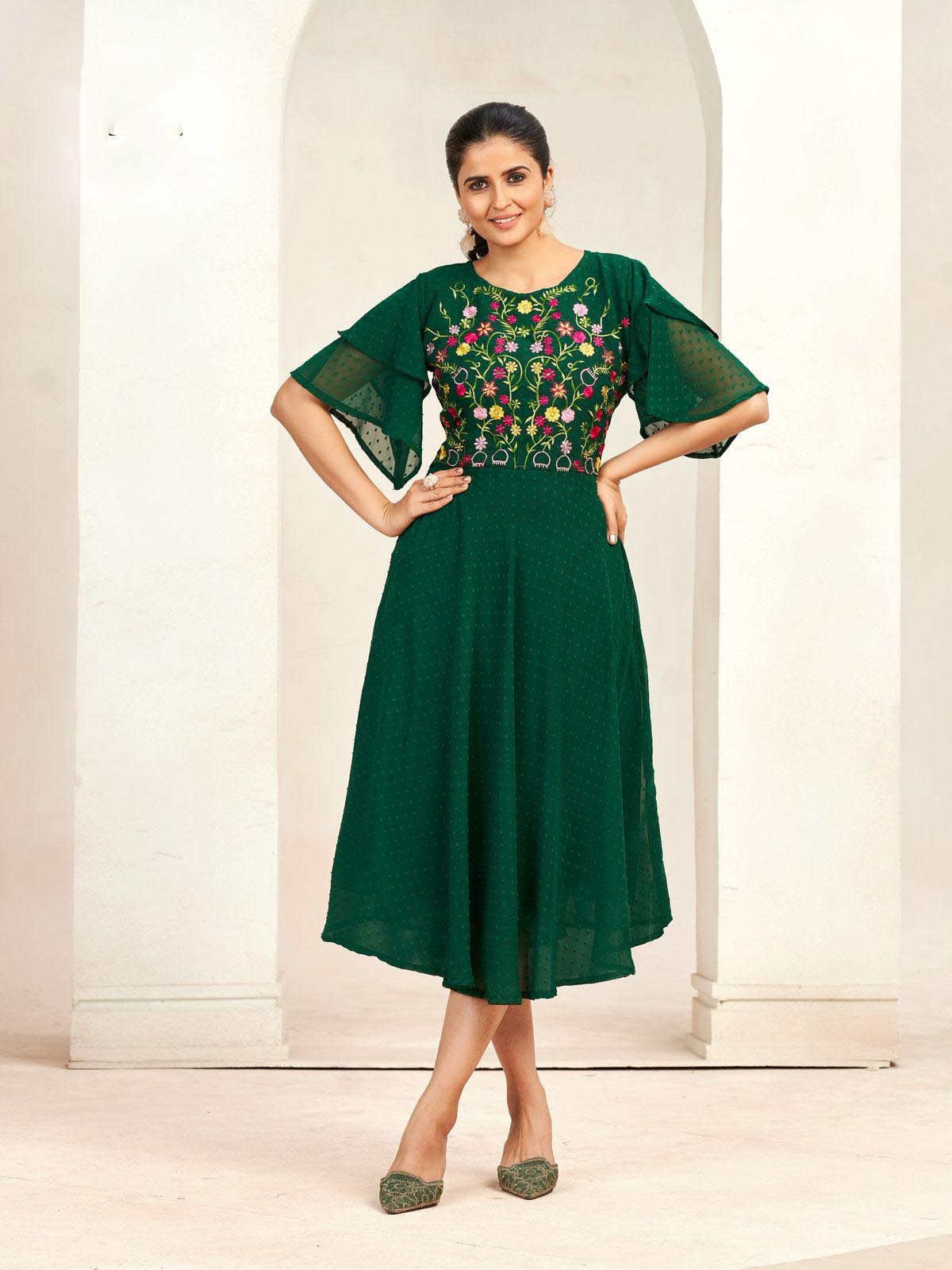 207 reviews for Green Georgette Butti Embroidery Thread Work Gown