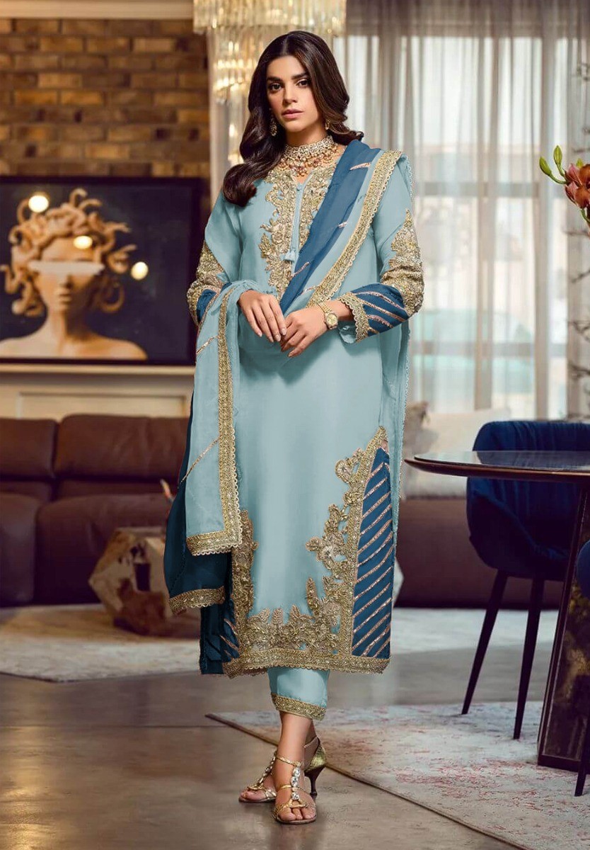 Light Blue Georgette Embroidery Sequence Salwar Suit