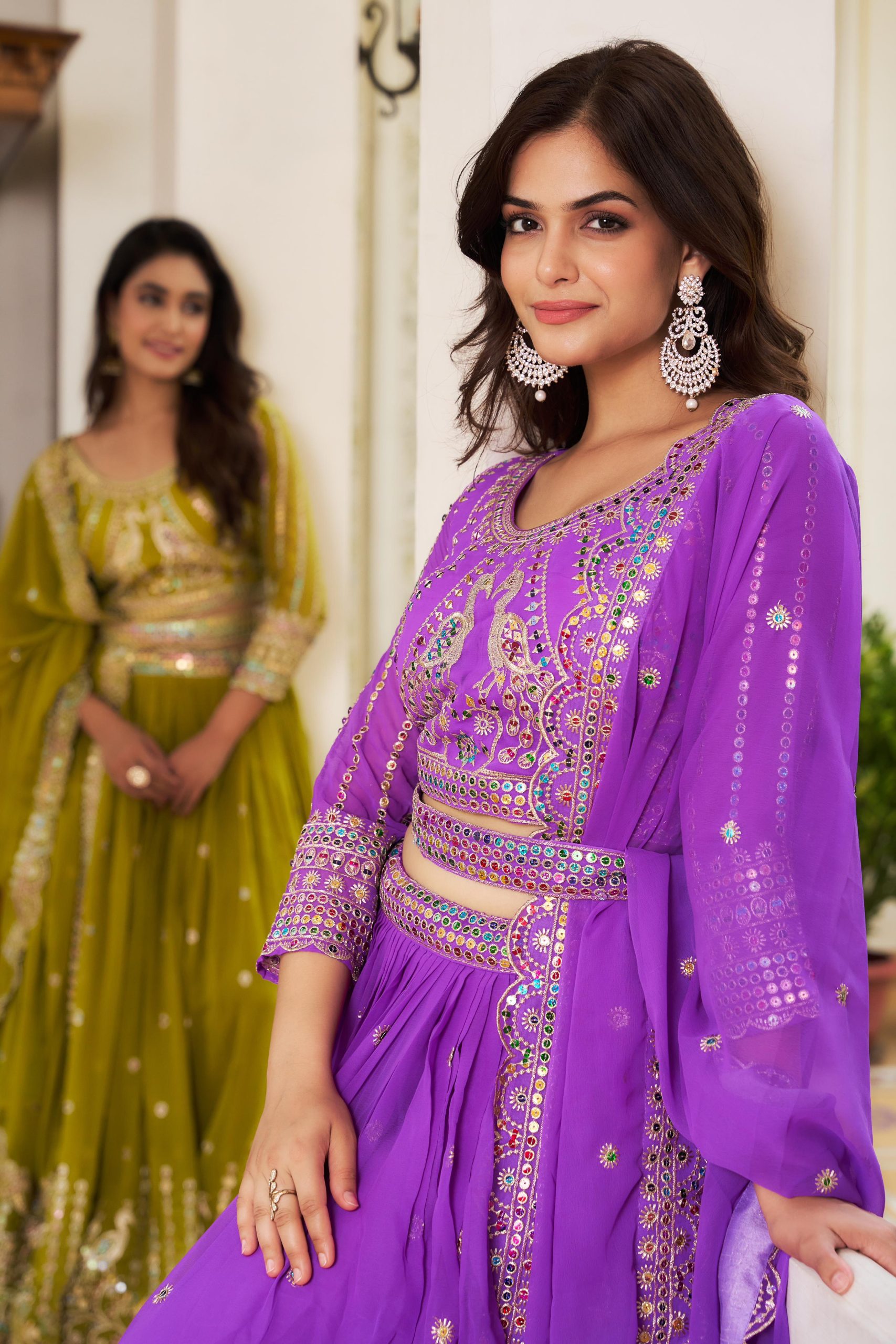 Aglow Pista Color Georgette Multi Sequence Work Lehenga Choli