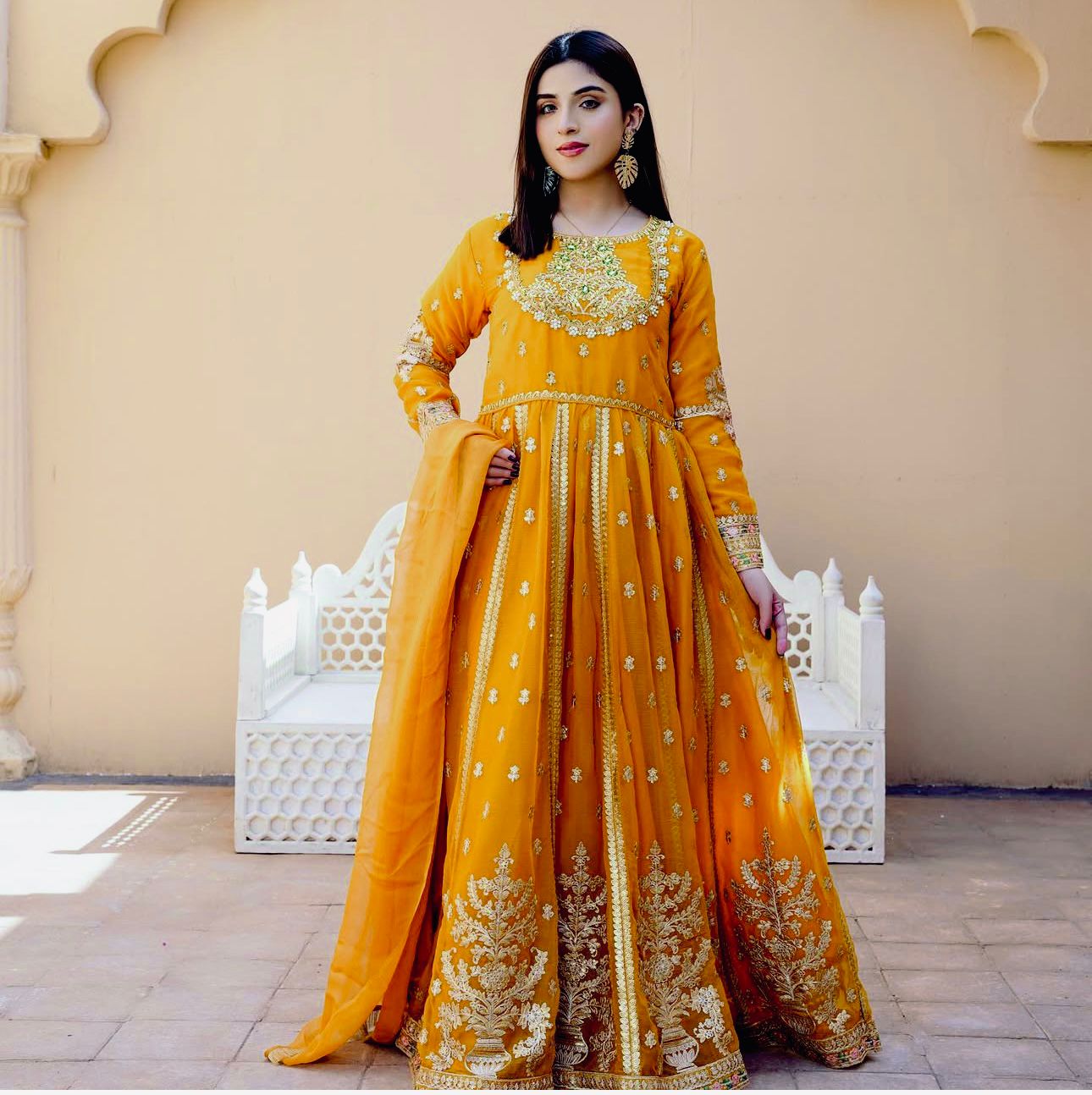 WW 1206 Yellow Color Fox Blooming Georgette Gown with Lace Work. Affordable Price ₹2399. Delivery 4-6 Working Days. Shop now. | Gowns, Bollywood Gowns, Creative Gowns, Designer Gowns, Embroidered Gowns, Party Wear Gowns