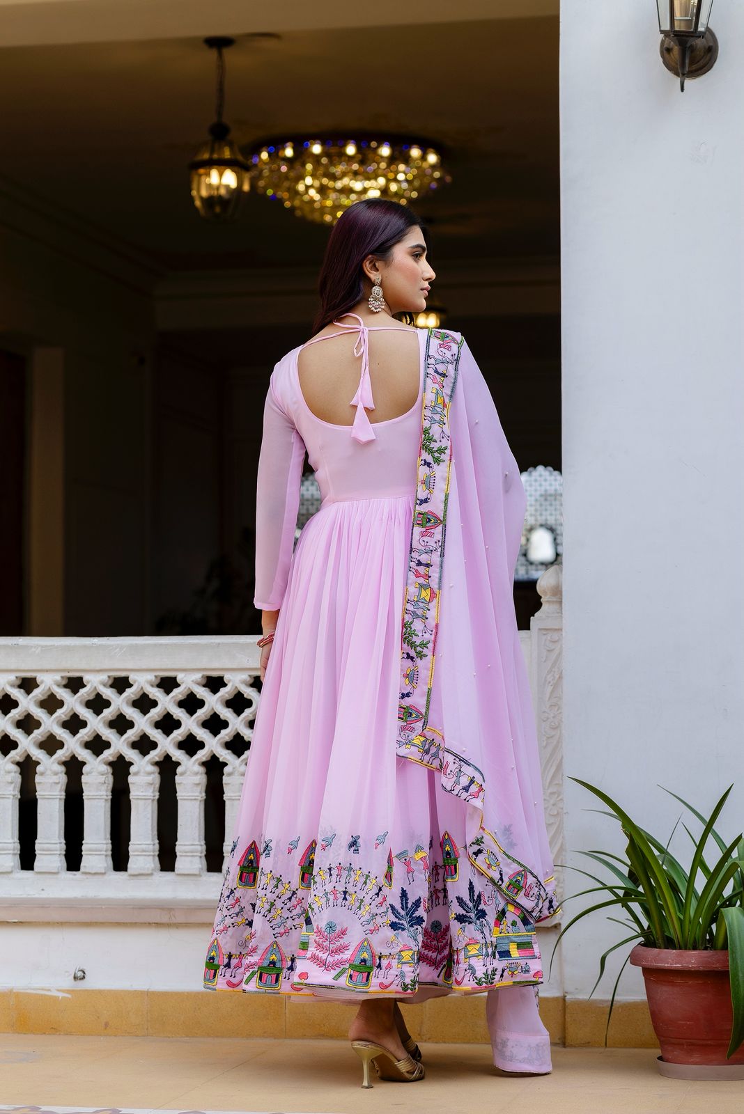 Alluring Pink Georgette Embroider Work Gown