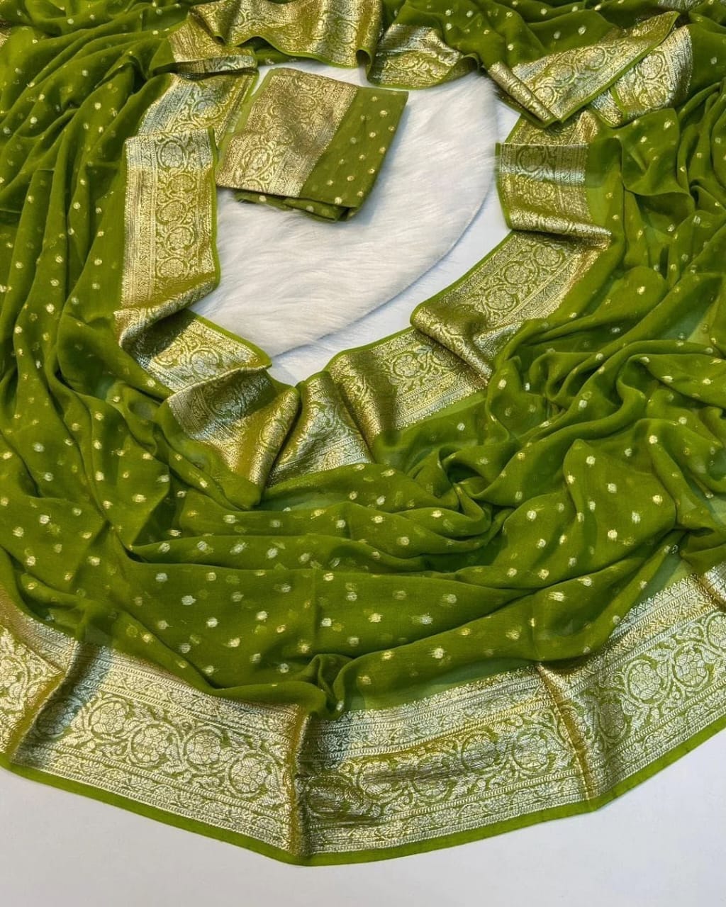 123 reviews for Green Viscose Georgette With Running Blouse Saree