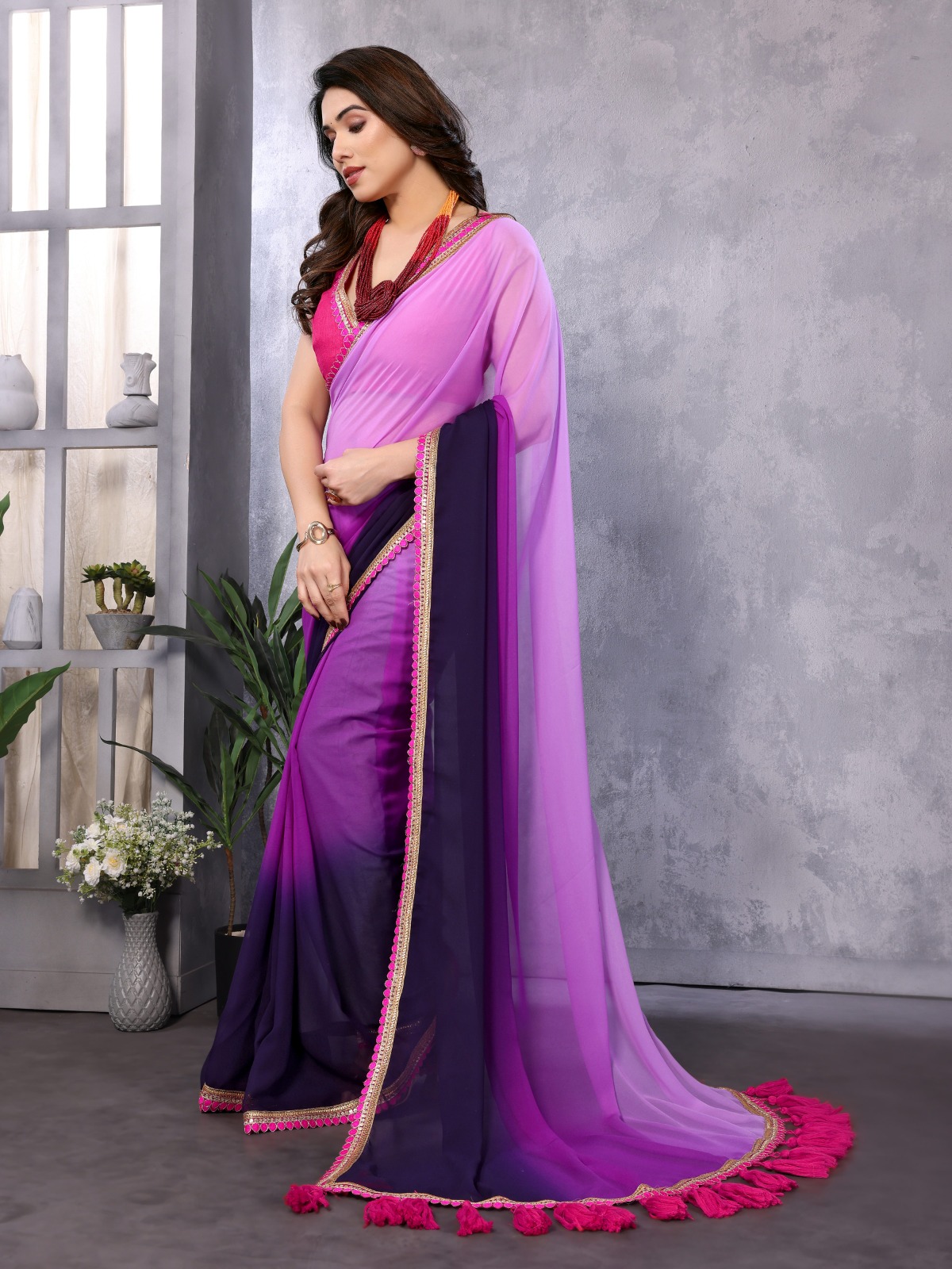 120 reviews for Purple Faux Georgette Party Wear Saree