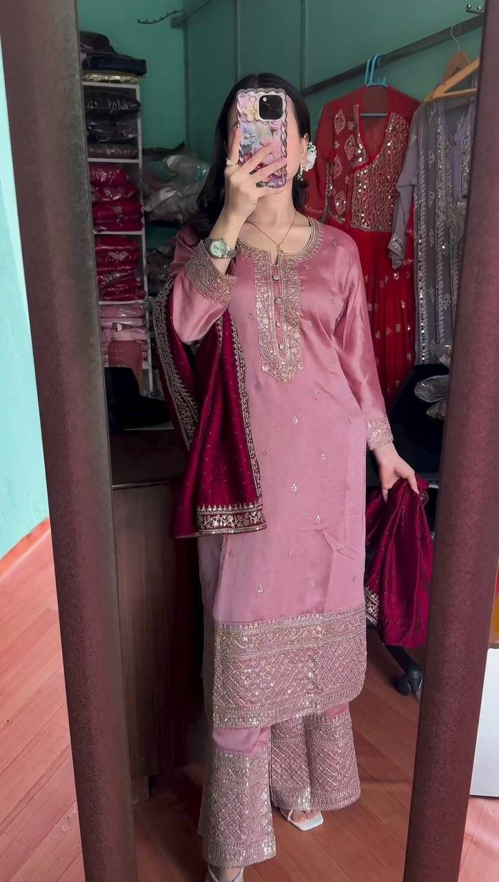Kurti Fabric : Heavy Pure Chinon. With 3 mm Embroidery Work
