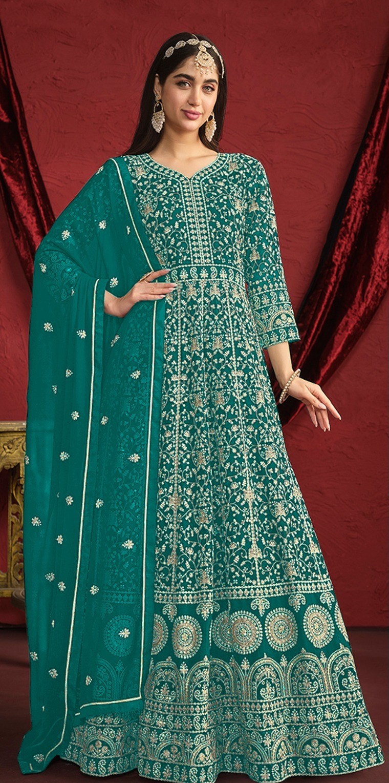 Beautiful Peacock Green Color Georgette Embroidery Salwar Suit