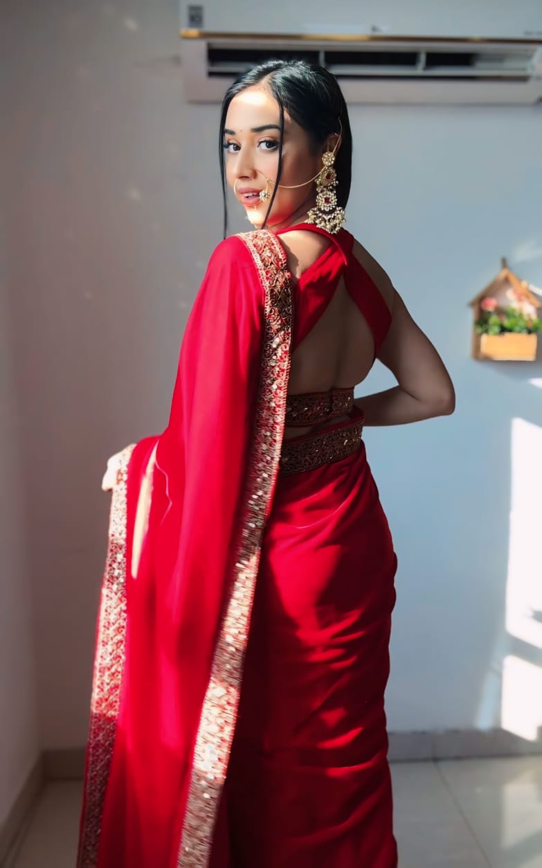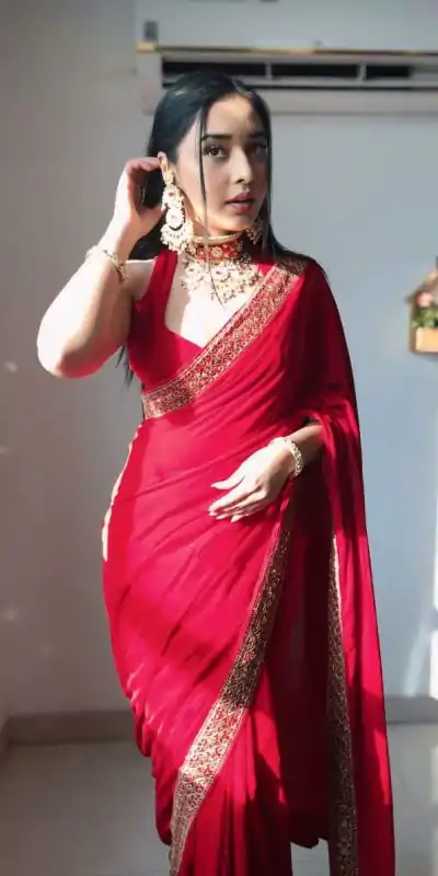 138 reviews for Red 9000 Velvet With Embroidery Lace Border Saree