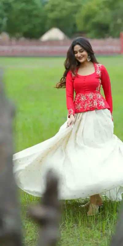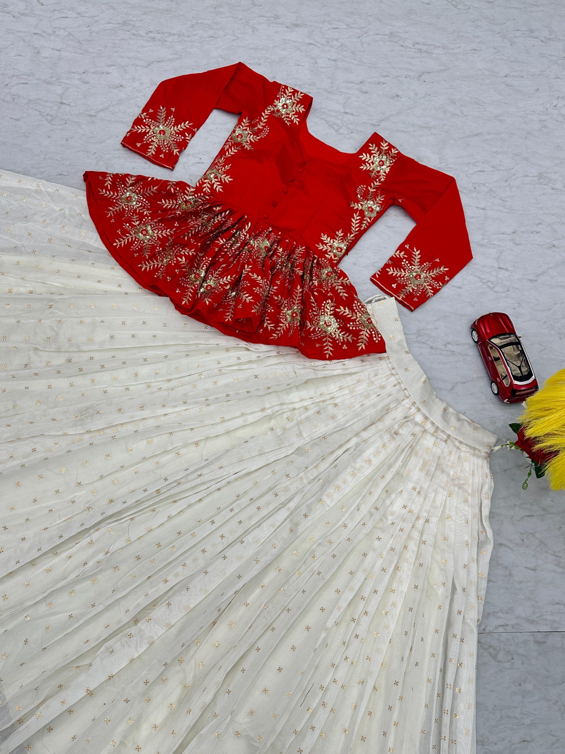 Beautiful White And Red Color Chinon Thread Sequence Lehenga Choli
