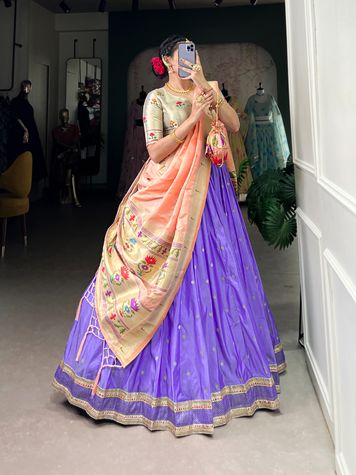 Lehenga Fabric : Jacquard Silk (Paithani)