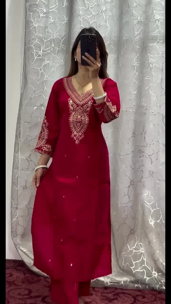 Fabrics | Top Fabrics : Heavy pure chinon With embroidery coding dori work Work : Embroidery coding dori work Salwar Suit Inner : Butter Crepe Height : 44-46 inches Top Size : Free Size Sami StitchesPant Fabrics :Heavy pure chinon silk Length : 39-40 fully stitchedPant Size : Free Size Full stitched Height : 40 inch Dupatta : Heavy pure chinon silk with embroidered sequence border Lace Work 2.2 Mtr |