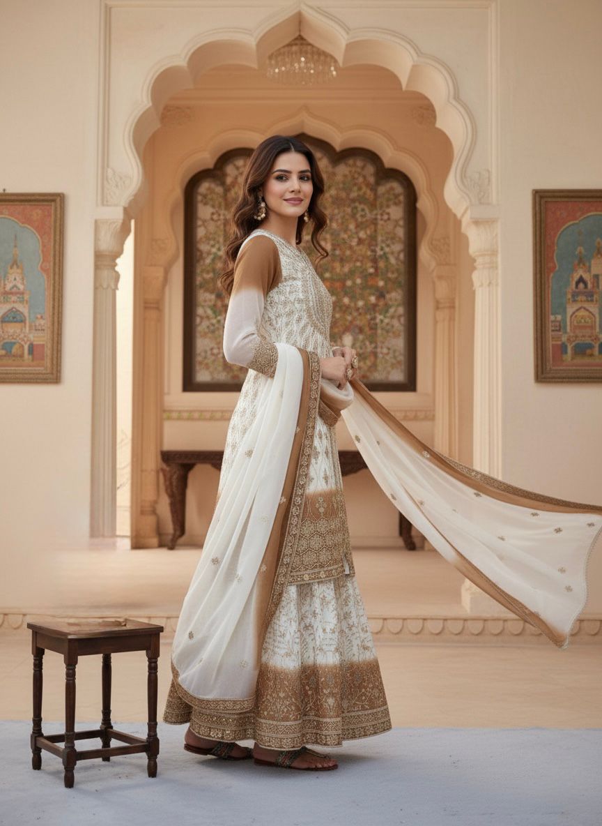 AD 224 Brown Color Dual Tone Star Georgette Salwar Suit with Embroidery Work. Affordable Price ₹2399. Delivery 4-6 Working Days. Shop now. | Jump Suits, Salwar suit, Casual Suits, Creative suits, Designer Suits, Palazzo Suits, Party Wear Suits, Patiala Suits, Straight Suits
