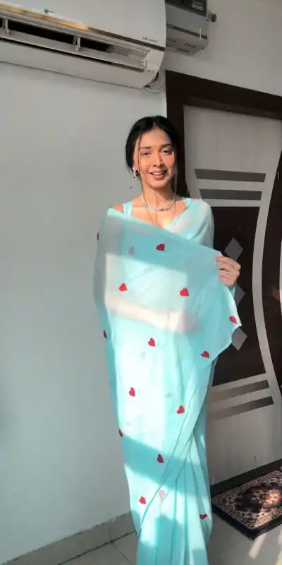 185 reviews for Sky Blue Soft Georgette Silk With Embroidery Red Heart Design Saree