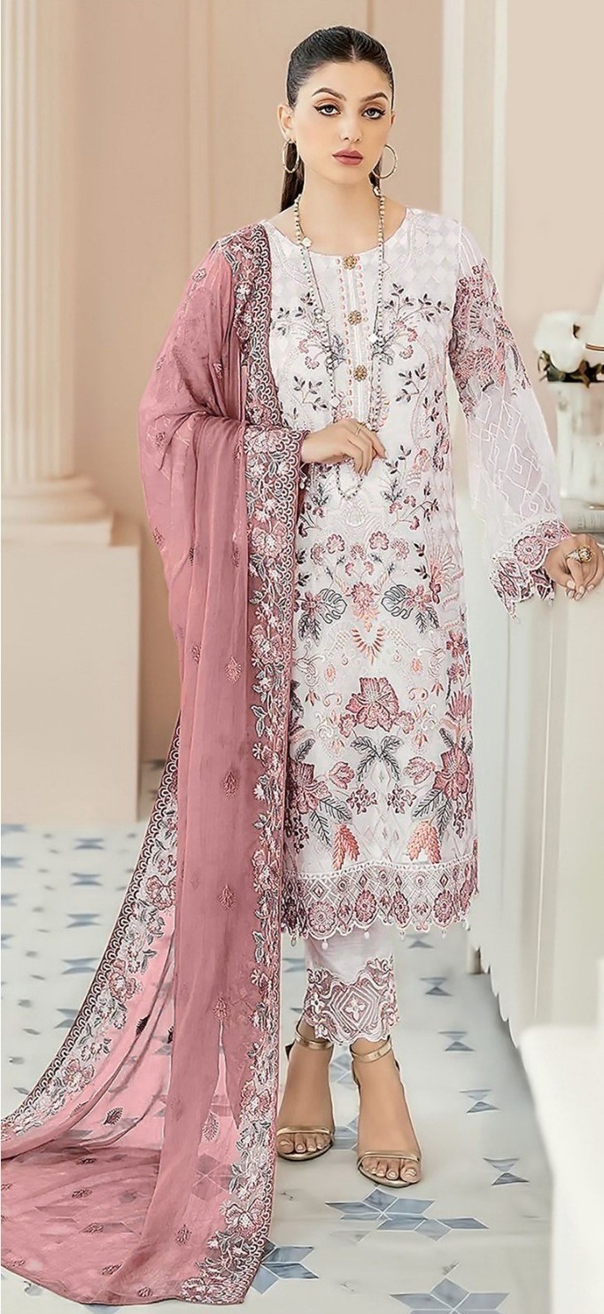 Fabrics | Top :Heavy Georgette With Embroidery work -Zarkan Sleeves :-Heavy Georgette With Embroidery work Inner :-Dull Santoon Bottom :-Dull Santoon Dupatta :-Heavy Georgette With Embroidery work Length :- Max up to 41 |