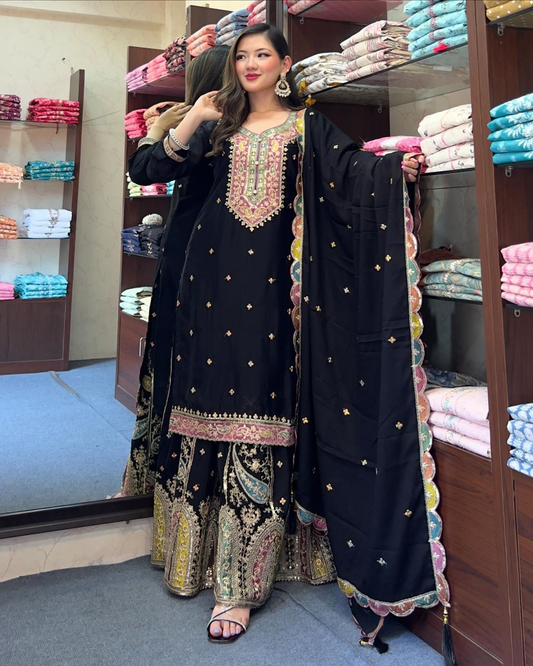 Black Chinnon Silk Embroidery Sequence Salwar Suit