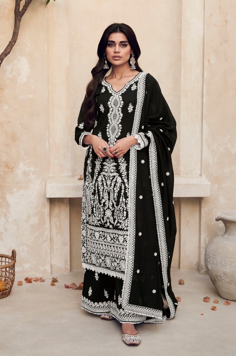 Dazzling Black Color Heavy Vichitra Embroidery Sharara Suit