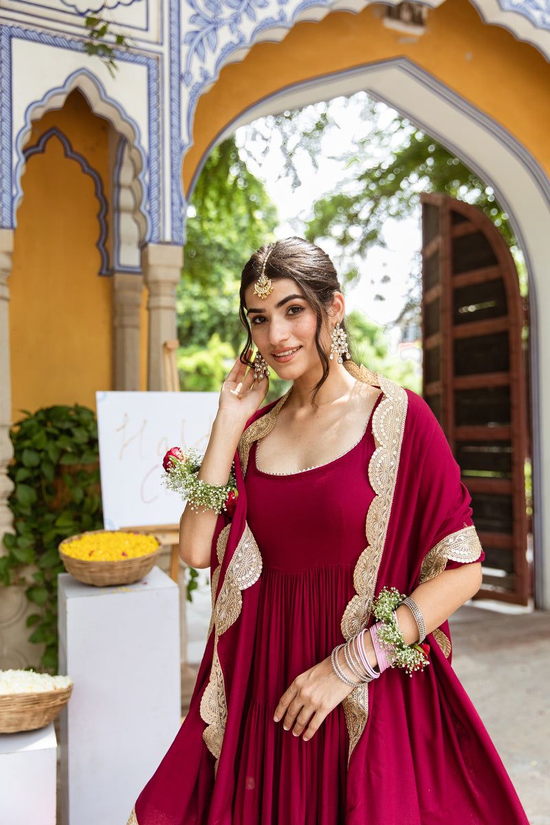 Fabrics | Top ::Heavy Georgette attached Pad With Extra Sleeve Fabric Inner : Micro Cotton Length:54-55 inches Bottom : Micro Cotton (Full Stitched) Dupatta : Heavy Georgette Embroidery Sequence Work lace Border |