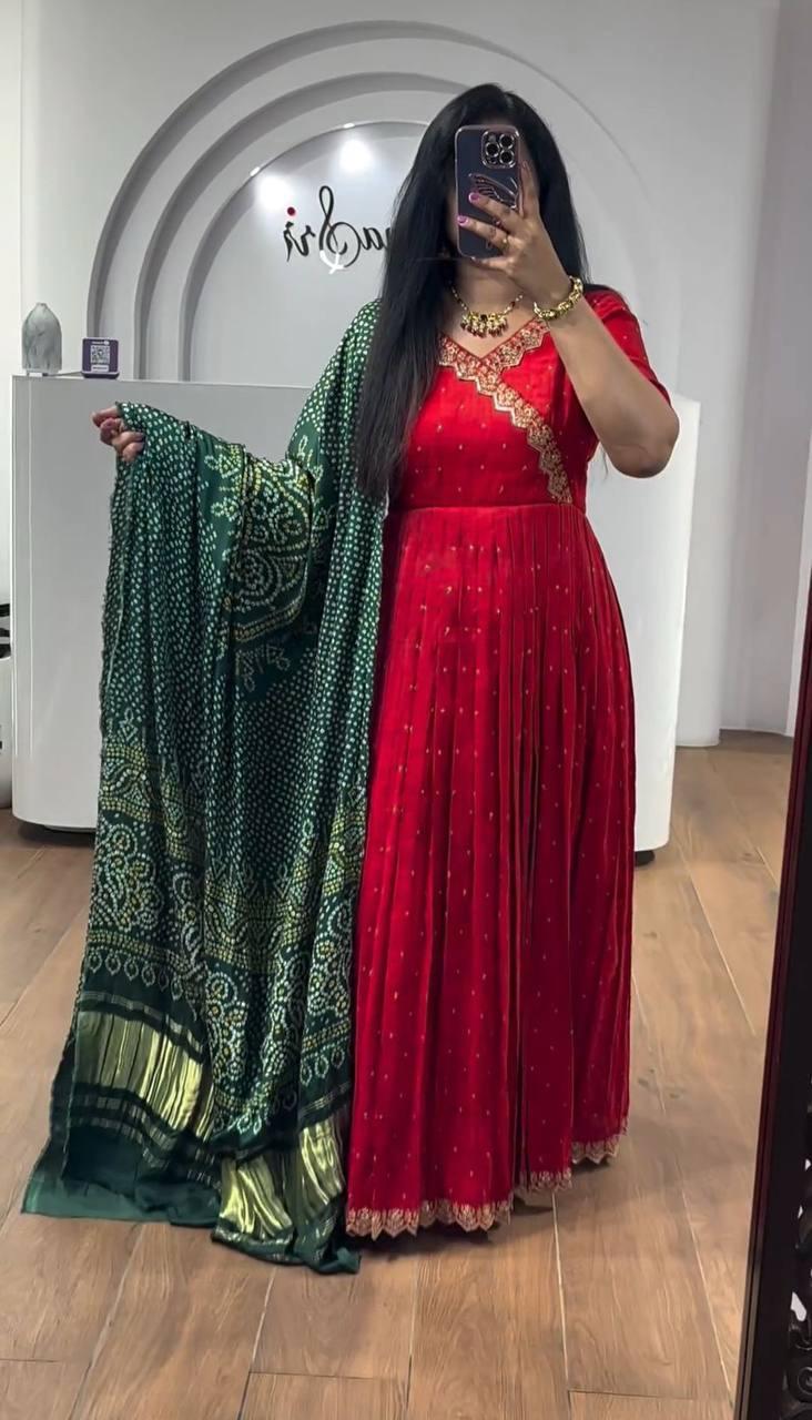 ย  Fabricsย  Gown Fabric :- Heavy Chinon Work :- Heavy Embroidery Thread & Sequence Work Inner :- Micro Cotton Length :- 55/56 Size :-Free Size Semi Stitched (Fully Stitched)Dupatta Fabric :- Chinon Work :- Digital Print Size :- 2.30 Meter