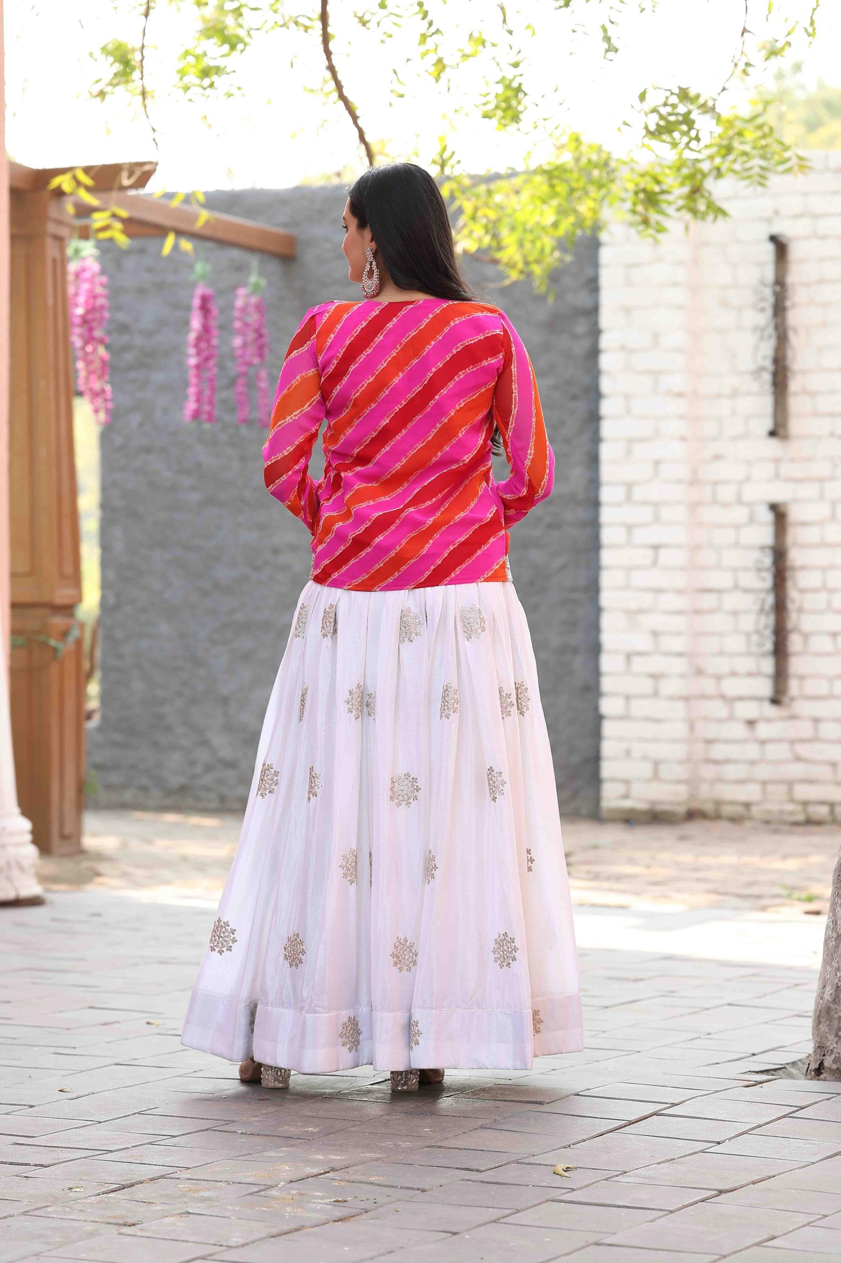 Β Fabrics | Fabric : Β pure chinon Inner : Micro Cotton Work : cording 3mm sequence Embroidery work Stitch : Free Size Semi StitchedΒ Size : Free Size Semi Stitched Jacket Fabric : Pure leheriya Inner:-Micro Cotton Work : cording 3mm sequence Embroidery work Size: M up to L margin XL up to 2xl margin |