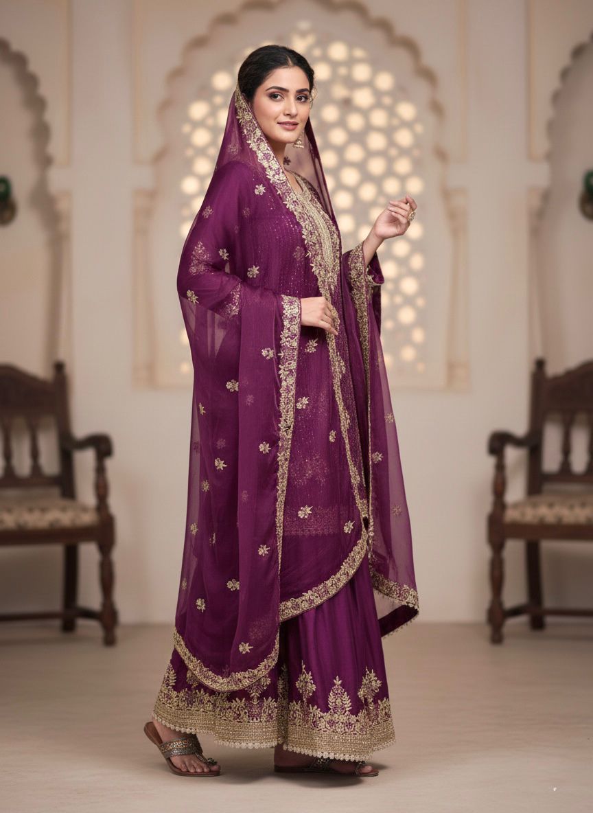 Fair Wine Organza Silk Embroider Cut Work Salwar Suit