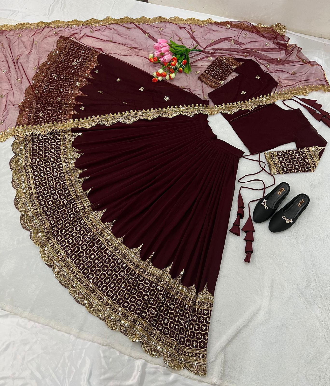 134 reviews for Maroon Georgette Embroidery Lehenga Choli