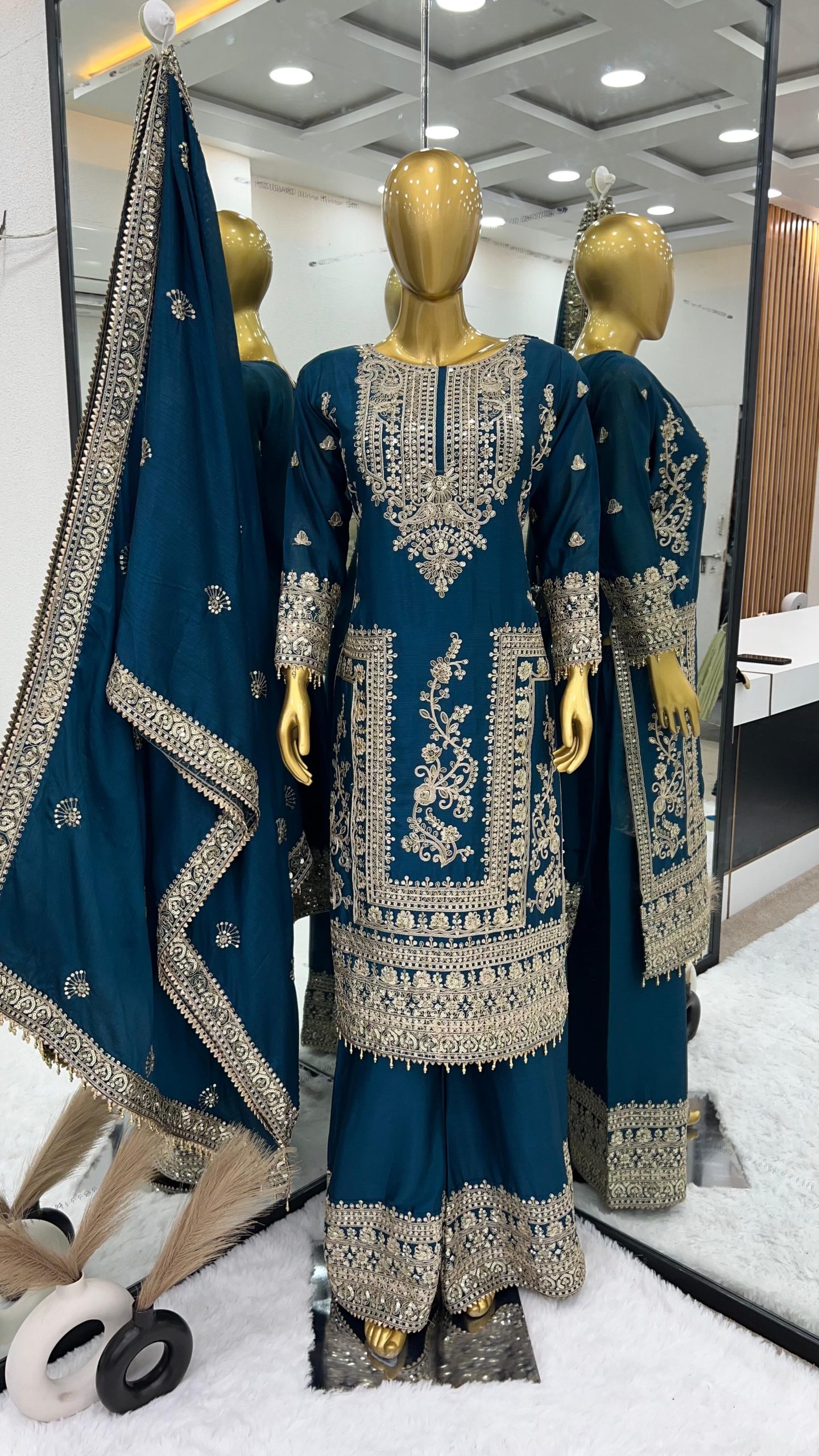 Royal Blue Chinnon Silk Embroidery Coding Salwar Suit