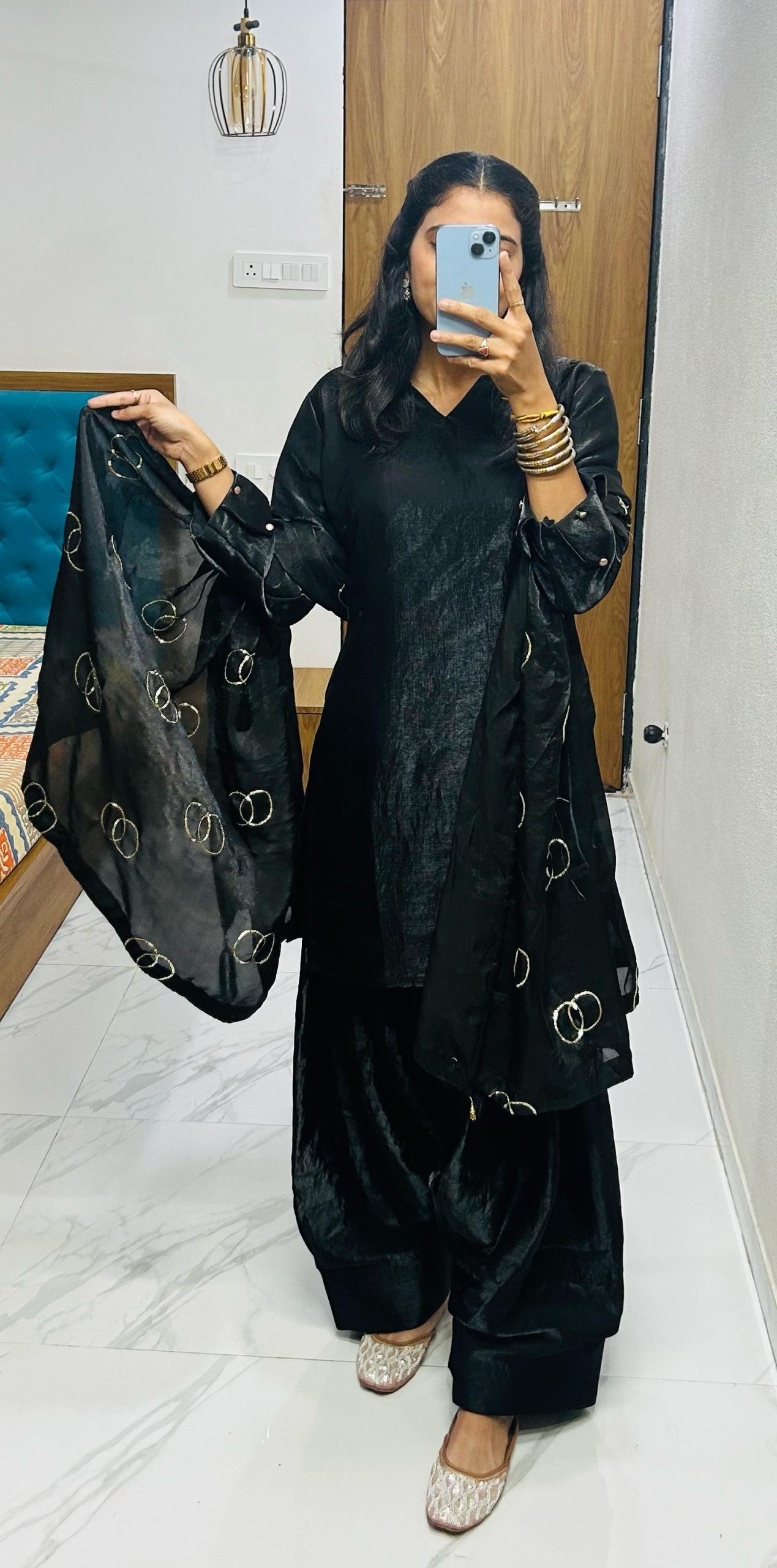 Fabrics | Top Fabrics : Fendi Silk Inner : Silk Height : 36”inch Top Size : Free Size Semi StitchedPalazzo Fabrics : Fendi Silk Pant Size : Free Size (Full stitched) Height : 40”inchDupatta : Fendi Silk With Embroidery Work And Laktan Lace Work 2.2 Mtr |