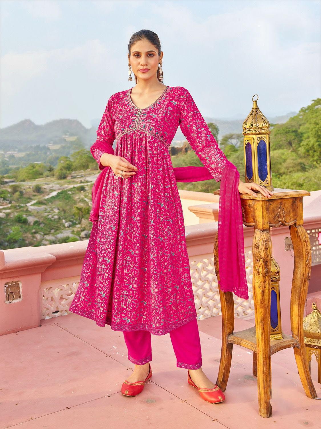 140 reviews for Dark Pink Rayon Alia Cut With Embroidery Work Kurti