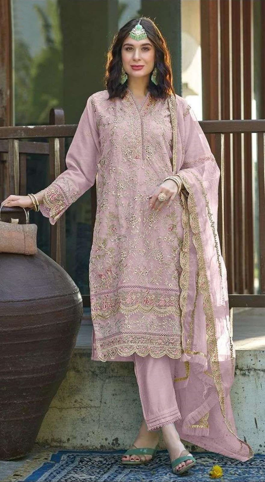 196 reviews for Light Pink Organza With Embroidery Sequence Work Salwar Suit