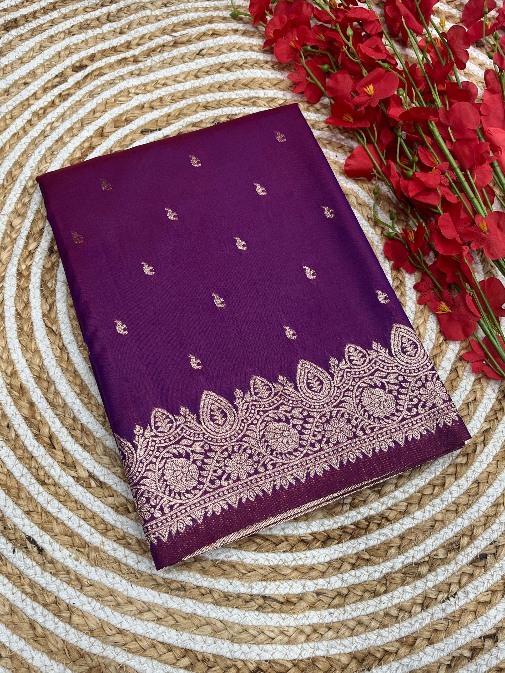 133 reviews for Purple Banarasi Silk Zari Weaving Pallu Saree