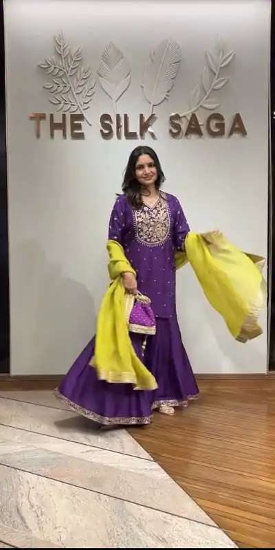 Fabrics | Top Fabric : Heavy Pure Chinnon Silk Work : 5mm Embroidery Sequence Work With Full Sleeve Top Inner : Heavy Micro Cotton Top Size : Free Size Fully Stitched Ready To Wear Top Length : 38-39 Inch Palazzo Fabrics : Heavy Pure Chinnon Silk With 5mm Embroidery Sequence With Fully Flair Palazzo inner : Heavy Micro Cotton fully stitched Palazzo Length : 40-41 Inch Dupatta : Heavy Pure Chinnon Silk With Lace Border Dupatta Work : Embroidery sequins Cut work Dupatta Size : 2.10MTR |