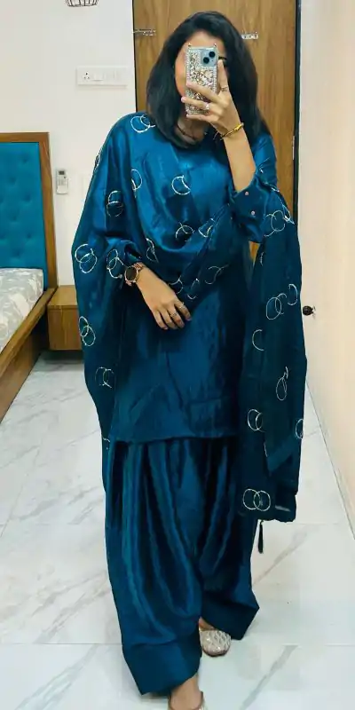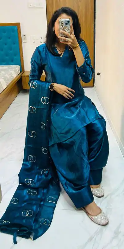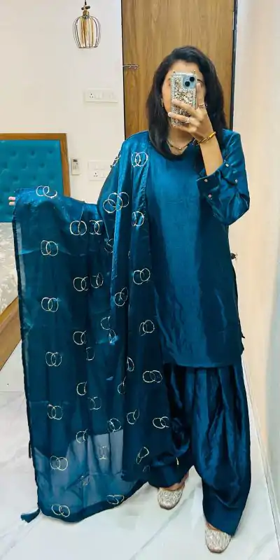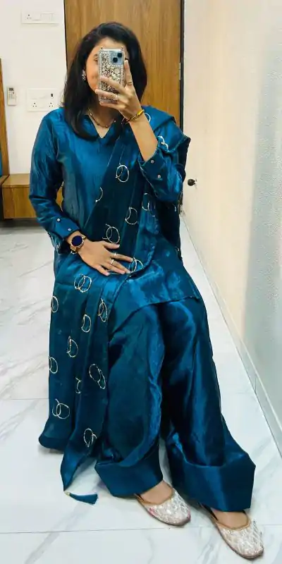Fabrics | Top Fabrics : Fendi Silk Inner : Silk Height : 36”inch Top Size : Free Size Semi StitchedPalazzo Fabrics : Fendi Silk Pant Size : Free Size (Full stitched) Height : 40”inch Dupatta : Fendi Silk With Embroidery Work And Laktan Lace Work 2.2 Mtr |