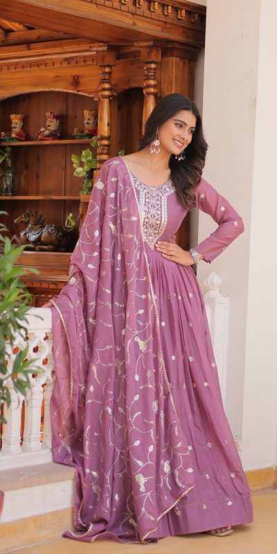 Light Purple Star Georgette Sequence Embroidery Work Anarkali Gown