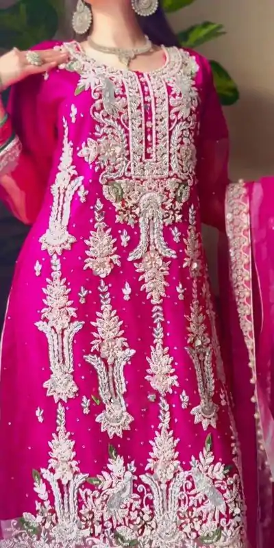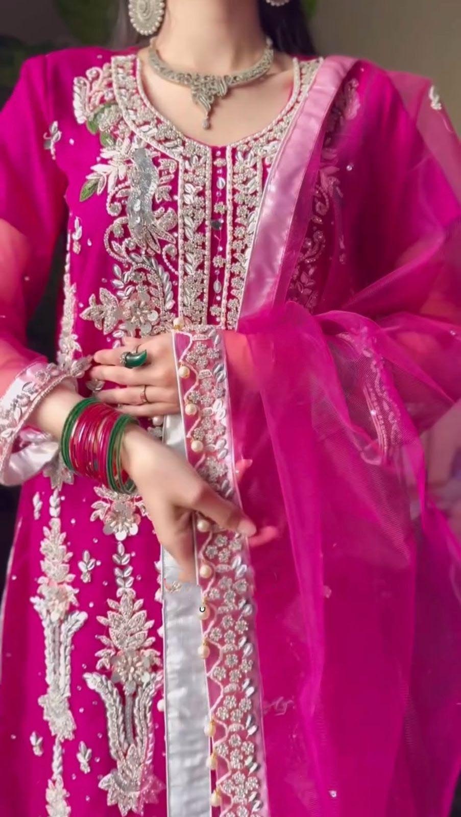 Pink Fox Georgette Sequence Embroidery Work Pari Lace Salwar Suit