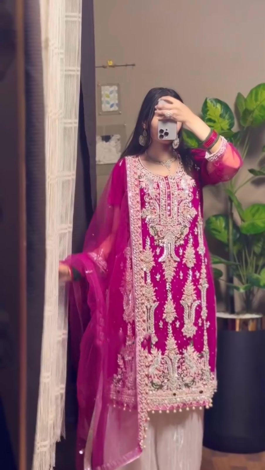 Glowing Pink Color Fox Georgette With Sequence Embroidery Work Pari Lace Salwar Suit