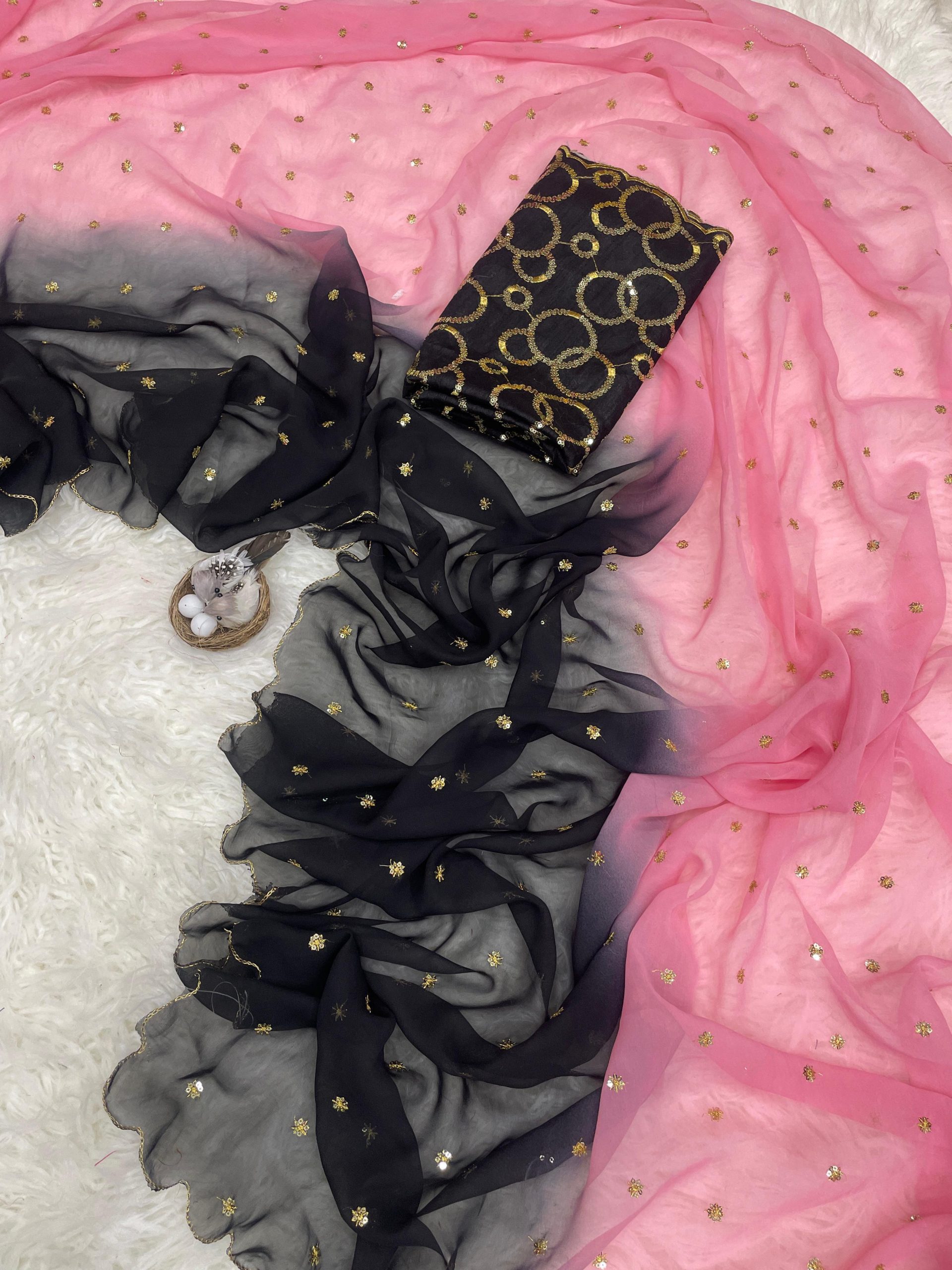 Fabrics | Saree : Pure Georgette work :sequence worked Butti with beautiful Arco with contrast worked blouse Blouse : Arco with contrast worked blouseSaree cut : 5.50+ meter