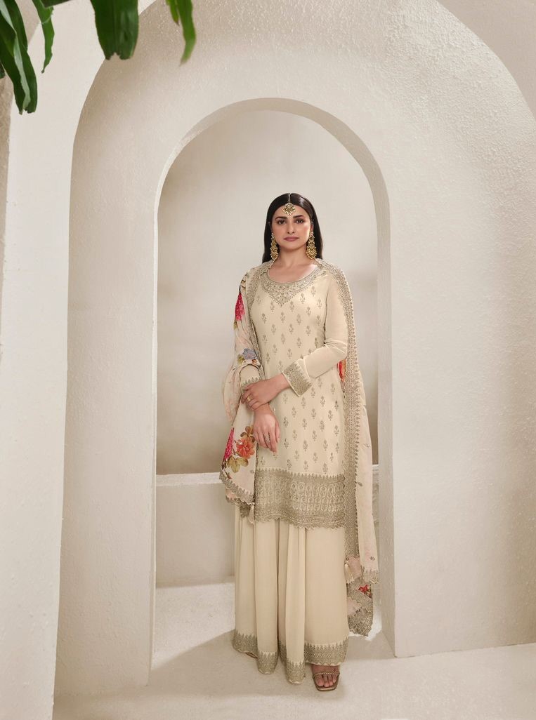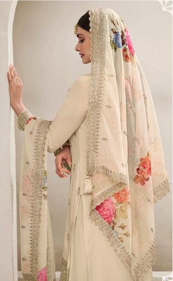 Cream Viscose Chinon Embroidered Sequence Salwar Suit
