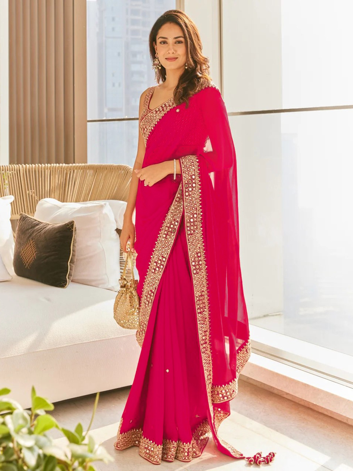 107 reviews for Pink Georgette Thread Sequence Work Saree