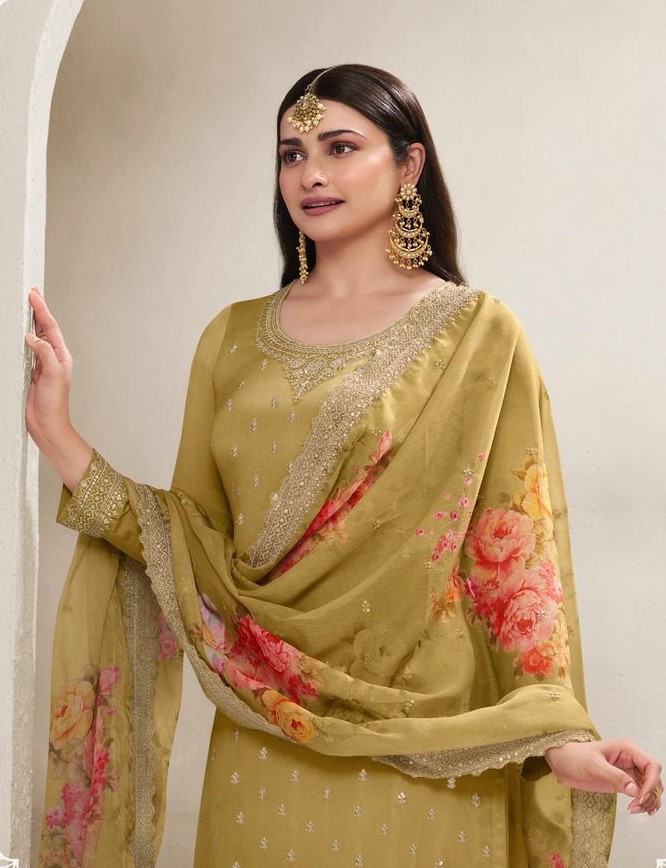 Fabrics | Gown :-Viscose Chinon & Embroidery Dhaga, Zari ,Sequence Work Inner:- Crepe Fabric Height- 42 Palazzo Fabric:-Viscose Chinon & Embroidery Dhaga ,Zari, Sequence Work Height-43 Flare-2 M Inner:- Crepe Fabric Dupatta Fabric:-Viscose &Embroidery &Sequence Work + Digital Print Length-2.20 M |