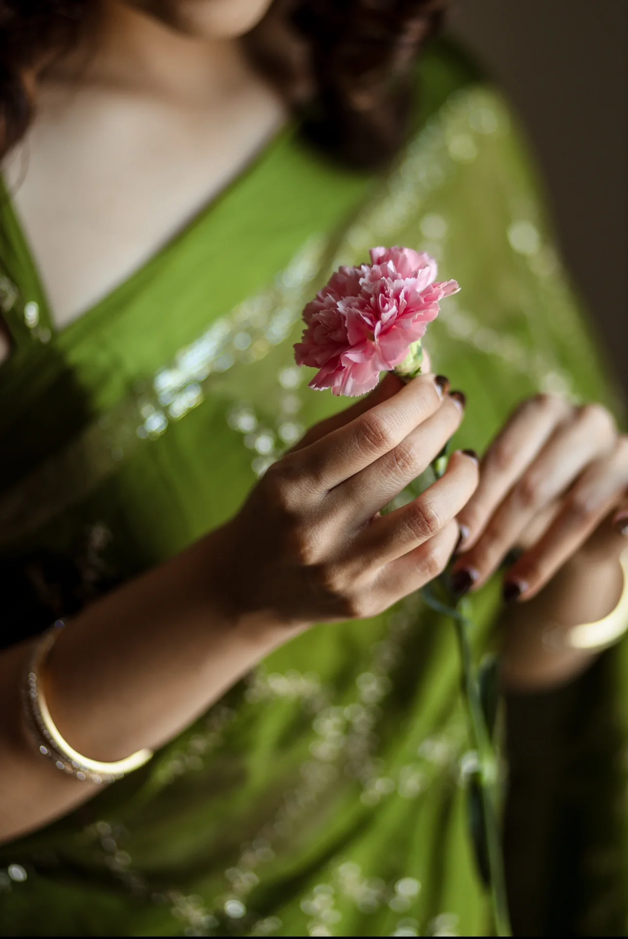 Green Viscose Satin Sequin Embroidery Work Saree