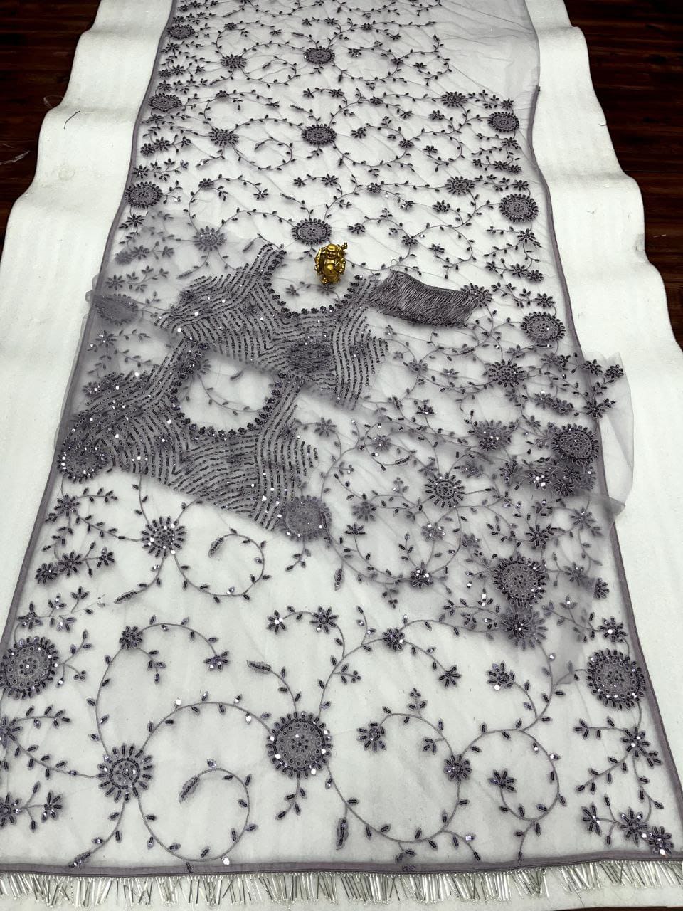 Grey Mono Net Embroidery Saree