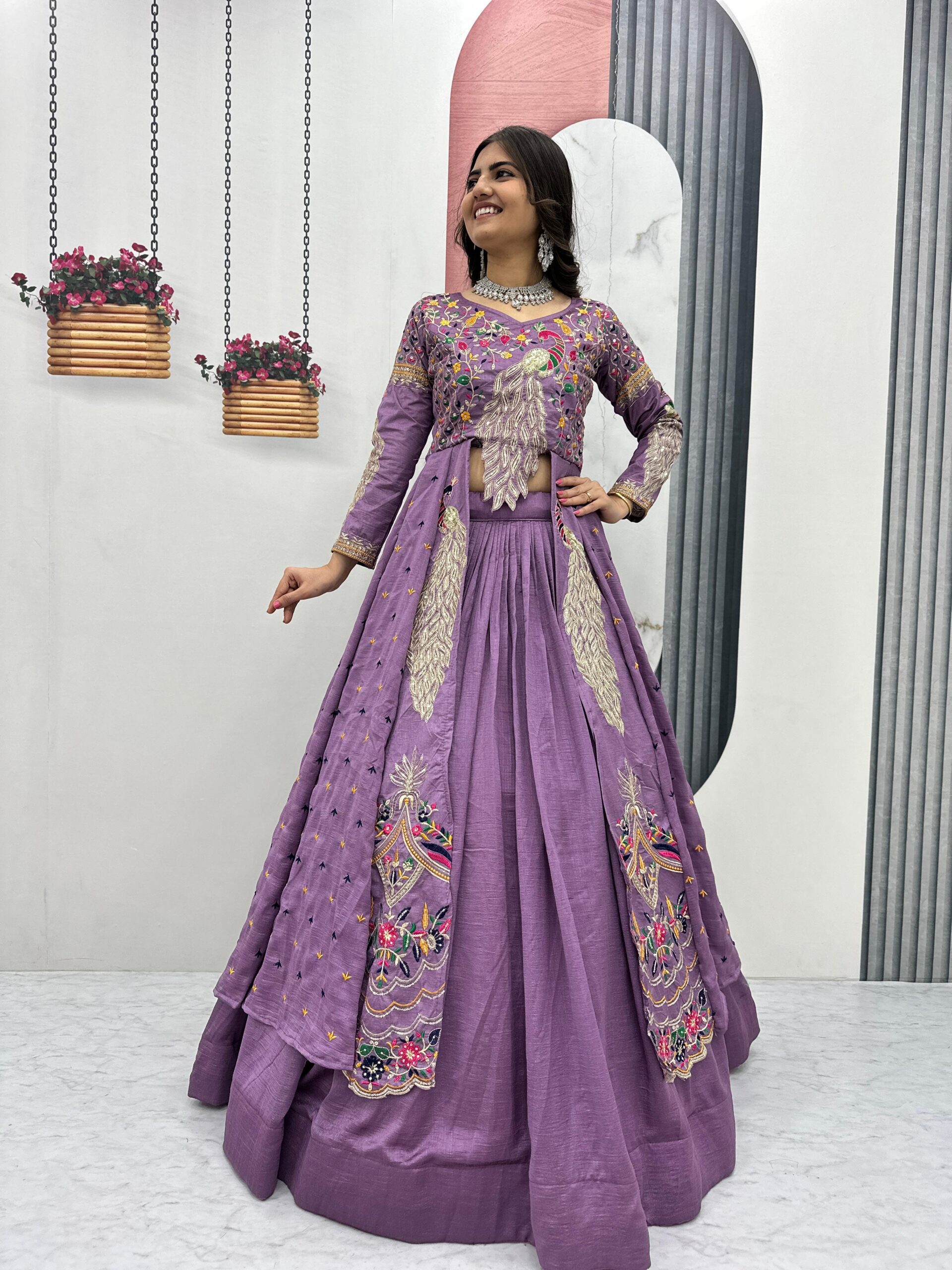 Top Fabric:- Pure Vichitra Work:- Heavy Thread And Sequence Work Inner:- Micro Cotton Cups:- Yes Size:- Free Size Semi Stitched (Fully Stitched) Lehenga Fabric:- Pure Vichitra Inner:- Micro Cotton Flair:- 3.50 Meter Size:- 44 Length:- 42 Attached Canvas Patta |