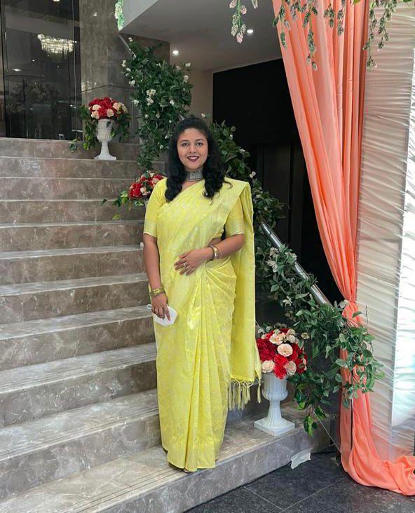 Light Yellow Soft Lichi Silk Zahlar Saree