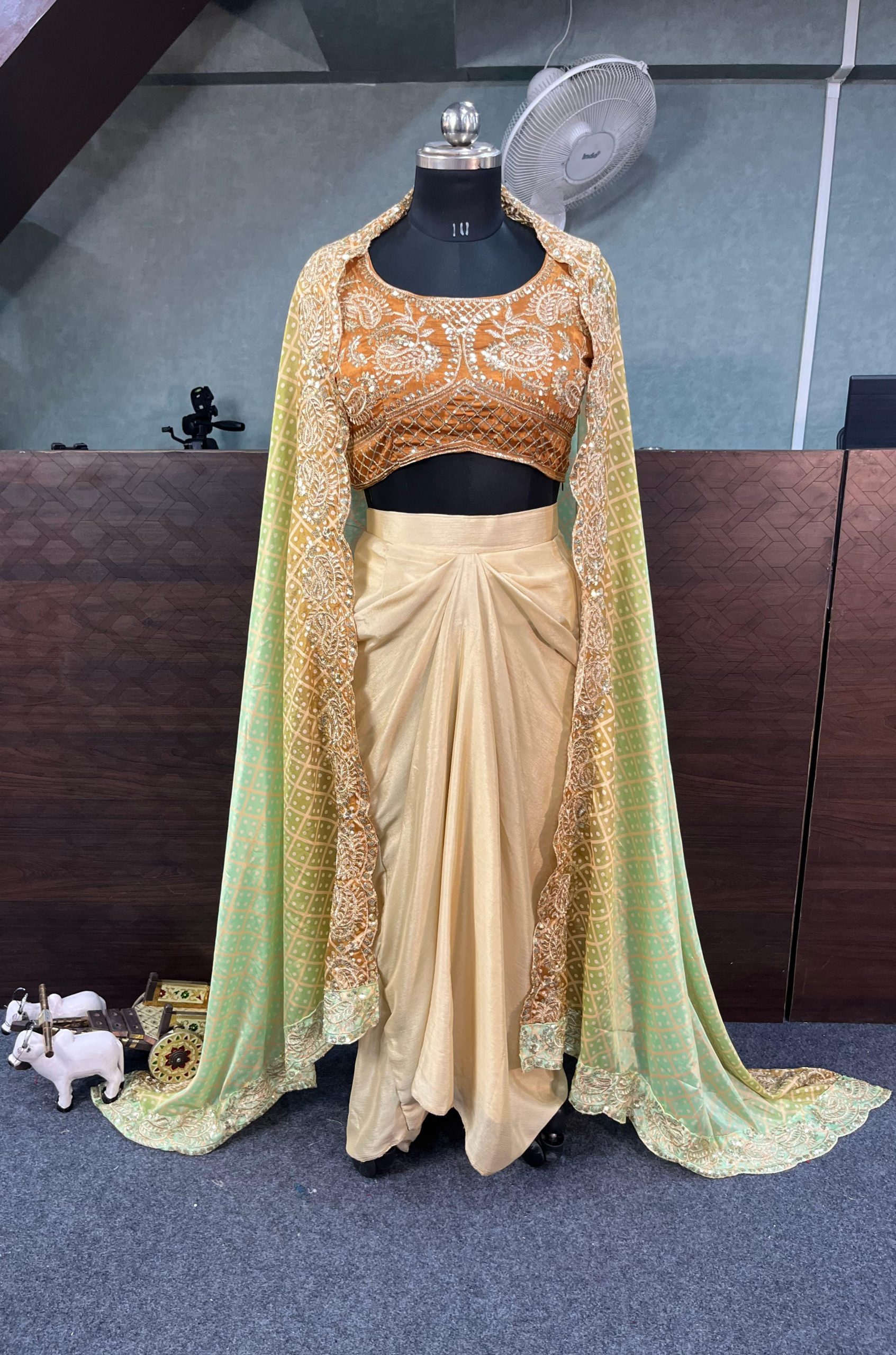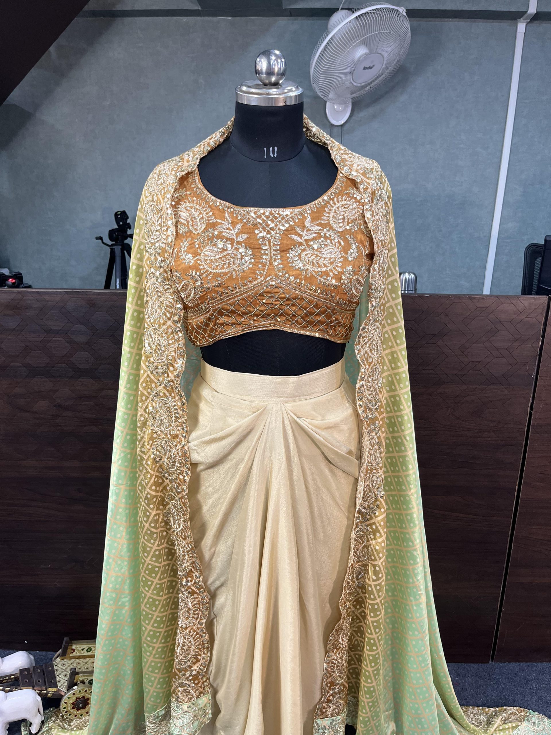 ย Fabrics | Shrug Fabric - Chinon Silk Shrug work - Embroidery Sequins Work Shrug Type - Fully stitched Top Size - Up to 44 Free Size Semi StitchedDhoti Fabric - Chinon Silk Dhoti Work - Embroidery Sequins work Dhoti Type - Stitched Up to 44 Free Size Semi Stitched Blouse Fabric - Chinon Silk Blouse Work - Embroidery Sequins work Blouse Type - 1.3 meter unstitched |