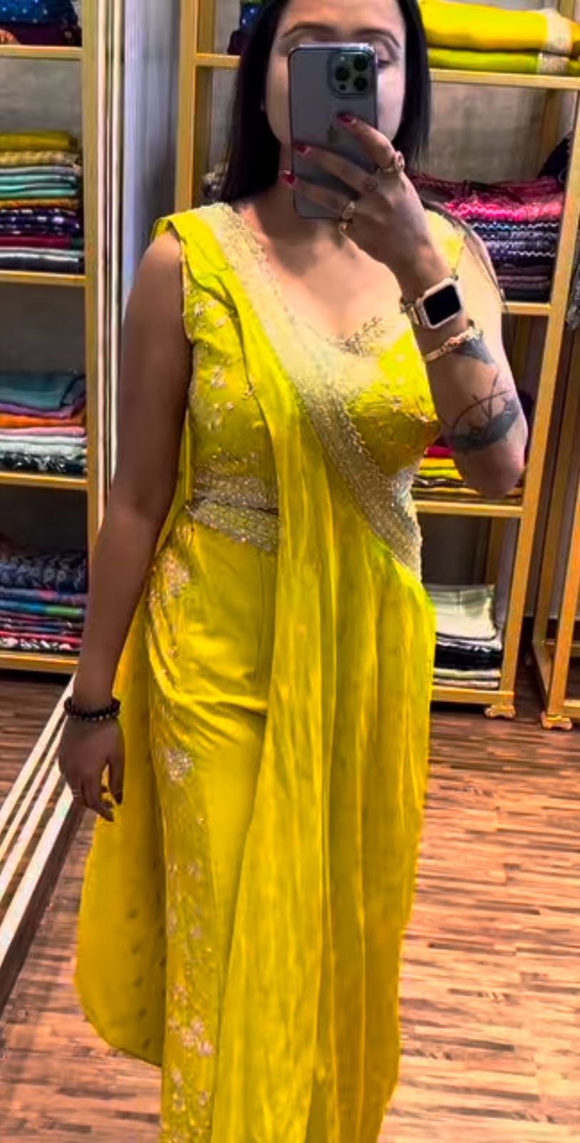 Fabrics | Palazzo Fabric :- Chinon Work :- Embroidery Work Waist :- Elastic Belt Up To 44 Inch Length :- 40 InchBlouse Fabric :- Chinon Work :- Full Embroidery Work Stitched Free Size Semi Stitched Dupatta Fabric :- Chinon Work :- Full Embroidery Work, Fancy Pattern & Pleats With Lace |