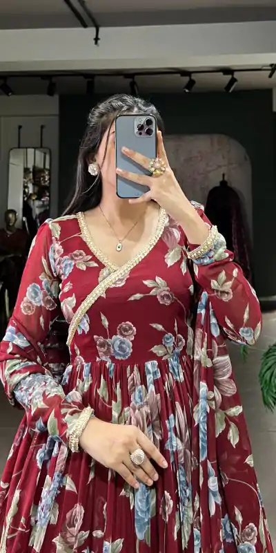 134 reviews for Maroon Marble Floral Print Lace Touch Up Gown