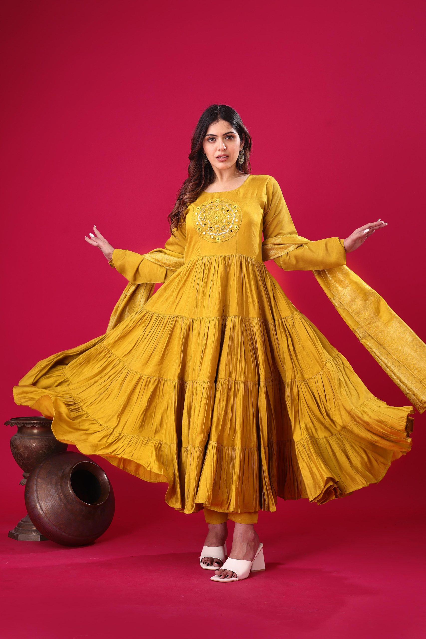 102 reviews for Yellow Roman Silk With Embroidery Sequence Work Anarkali Gown