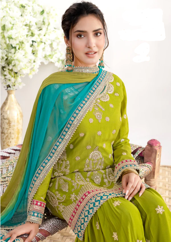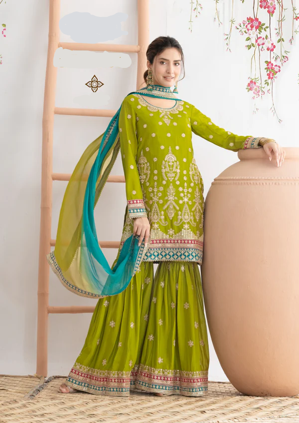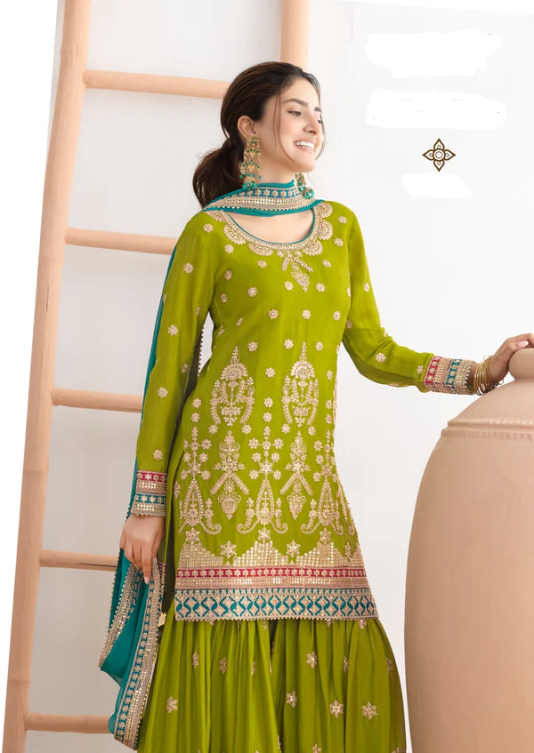 Mahendi Chinon Embroidery Mirror Work Salwar Suit
