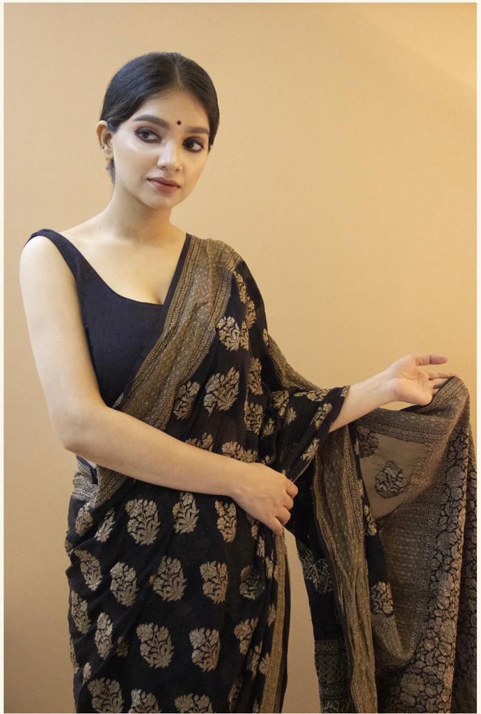105 reviews for Black Soft Silk Jacquard All Over Saree
