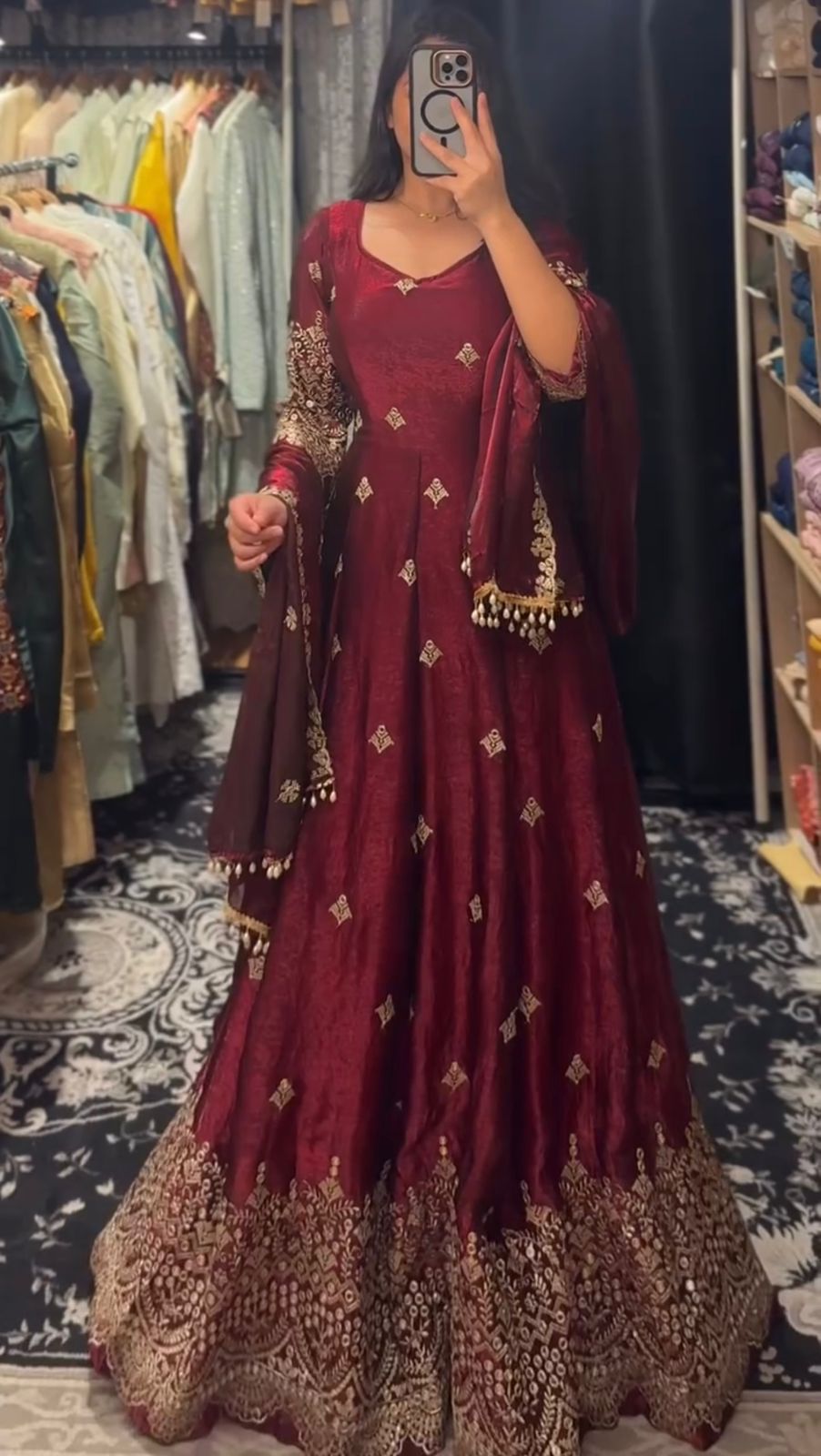 KD 1564 Maroon Fendy Silk Gown Perfect for Wedding, Party, Durga Puja, Festival Celebrations, Ganesh Chaturthi – . Best Price ₹2399. Delivery 4-6 Wor | Gowns, Bollywood Gowns, Creative Gowns, Designer Gowns, Embroidered Gowns, Party Wear Gowns