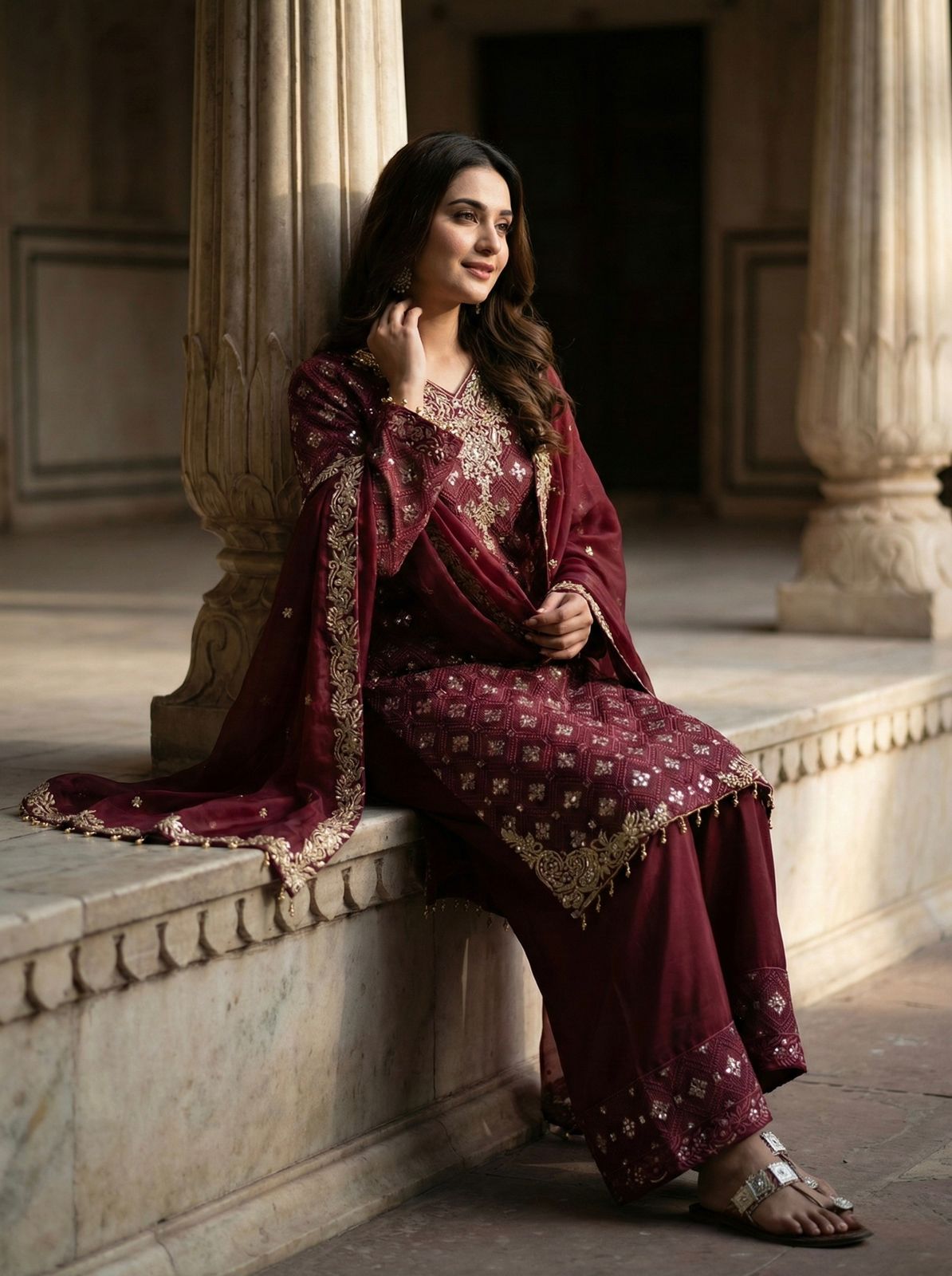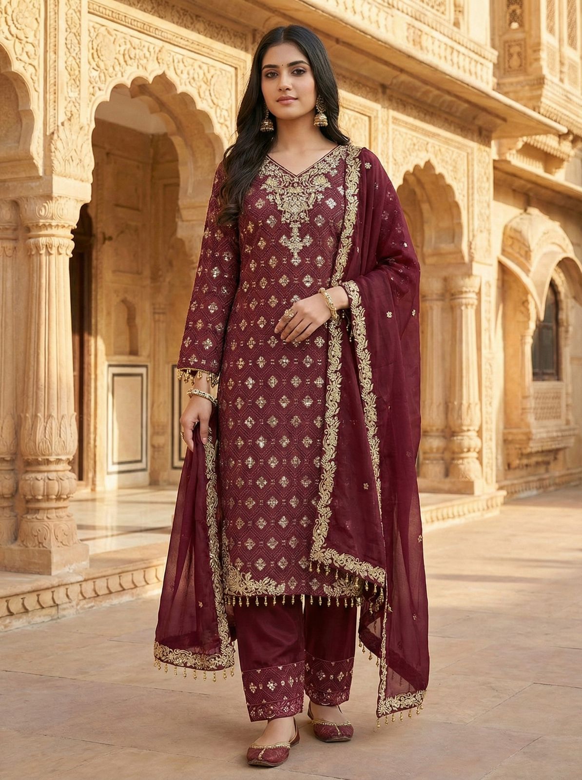 Maroon Pure Organza Silk Sequence Work Salwar Suit