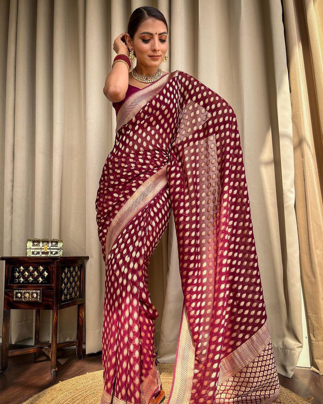 Maroon Soft Lichi Silk Rich Pallu Work Saree